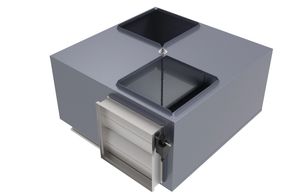 The XCo Flow Controller easily integrates with traditional, overhead systems by introducing flexibility for where air is supplied and returned. In cooling, air is supplied low in the occupied zone and returned at a middle level. The goal in cooling is to only condition the occupied space, letting the upper zone stratify thereby reducing the overall cooling demand. In heating, air is supplied near the ceiling and returned near the floor. The goal in heating is to create a well-mixed space by drawing down warm air from the ceiling and removing cold air from the occupant level.